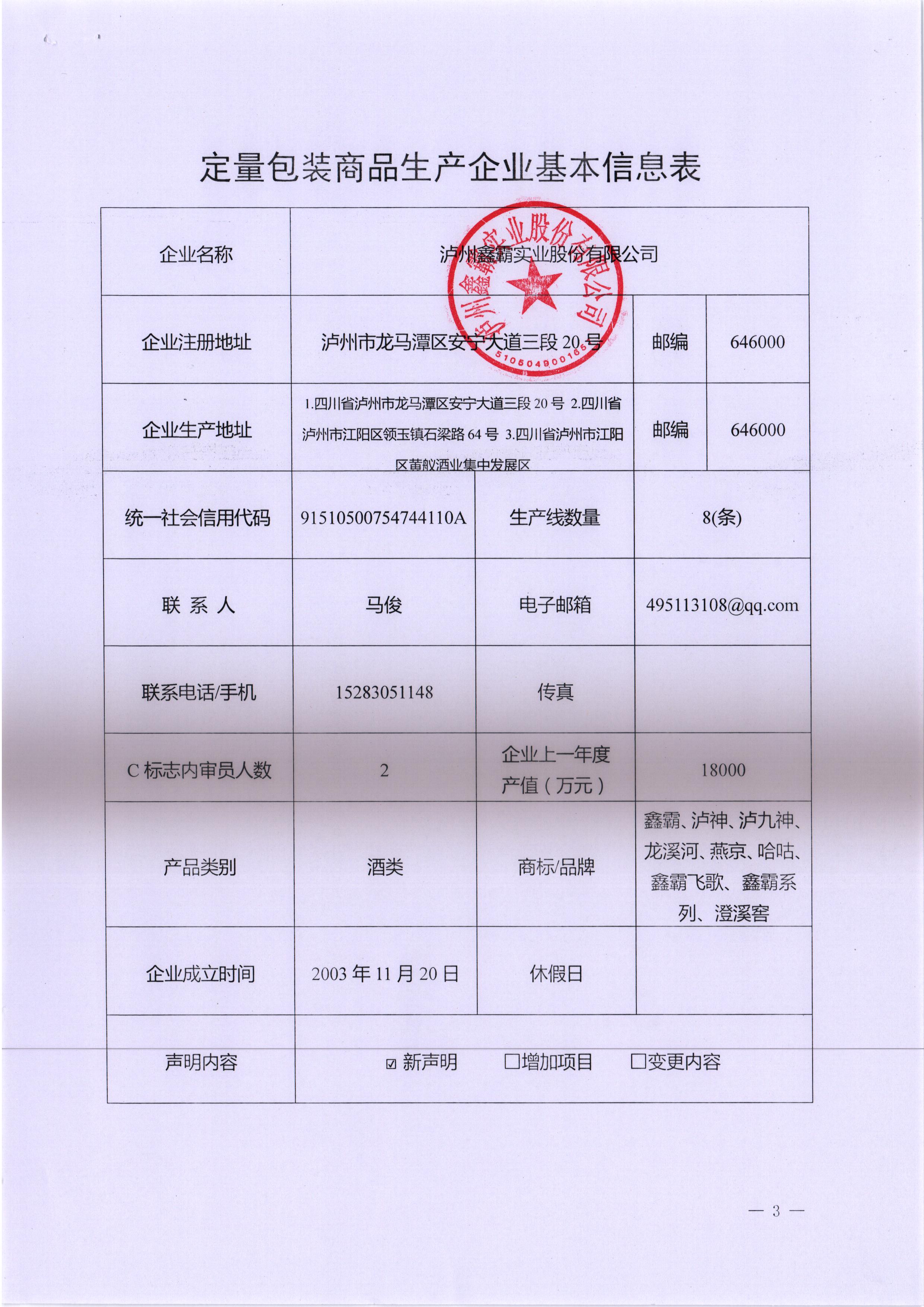 四川省定量包裝商品生產(chǎn)企業(yè)計量保證能力自我聲明